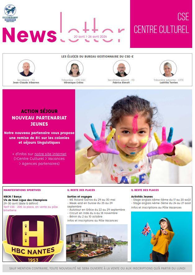 Newsletter du 30 mars au 5 avril 2026