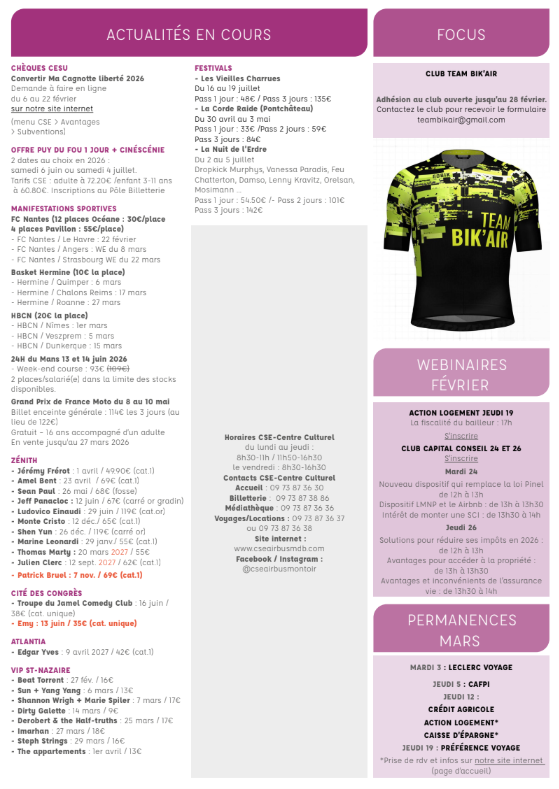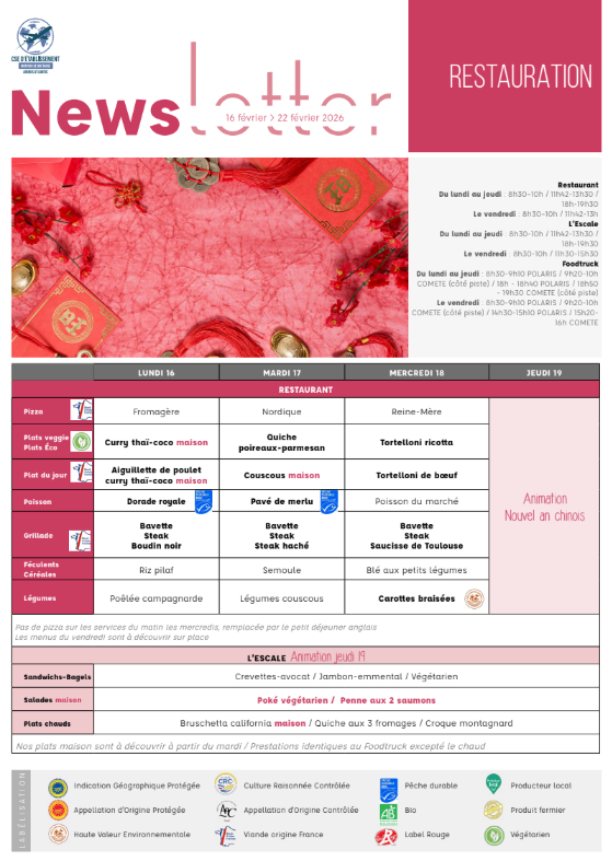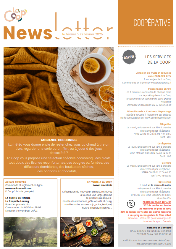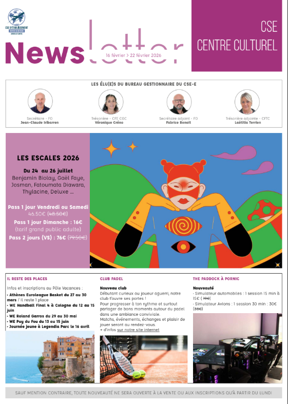 Newsletter du 16 au 20 février 2026.