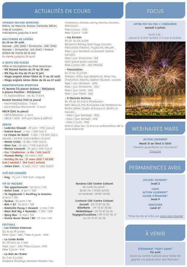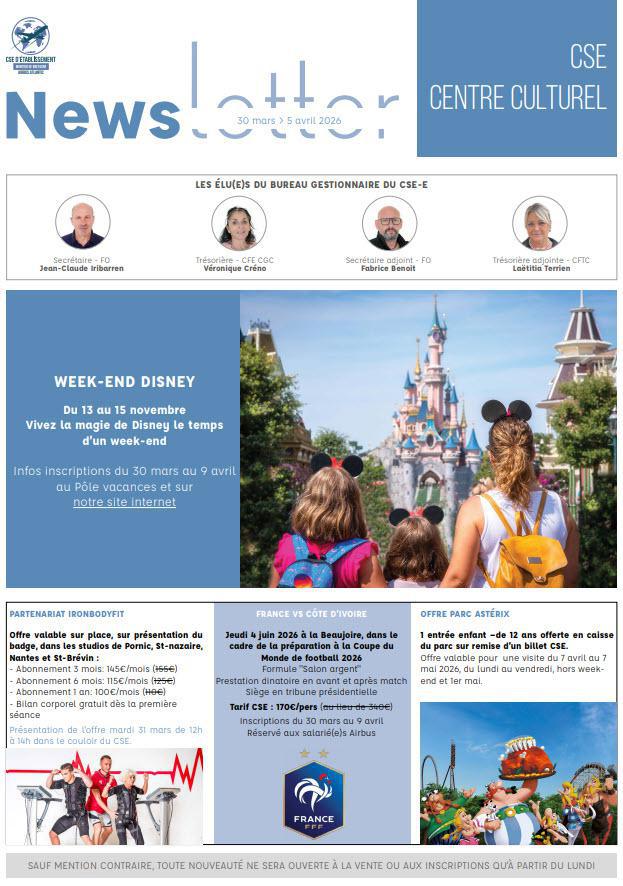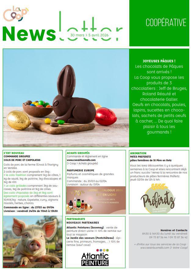 Newsletter du 30 mars au 5 avril 2026